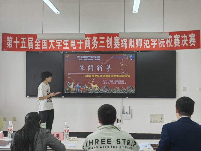 本届校赛分初赛、决赛两轮。全校共有258支常规赛团队、39支实战赛团队通过资格审核进入初赛,涉及TapTap、吉利公司、成都理工大学、四川师范大学等29所高校和公司21个公司所有专业,赛事继续保持了高质量和高影响力。经过校内外专家的项目初评,共有16支常规赛团队、4支实战赛团队进入决赛。决赛项目于4月26日在厚德楼309进行路演答辩,由点点taptap杜漪教授、四川国潮服饰有限公司杨志正董事长等校内外专家对各参赛团队从项目创新、创意、创业、文案、演讲五个方面进行了精辟独到的点评和细致评分。经小组路演答辩,本届校赛评选出常规赛道特等奖12项、一等奖64项、二等奖90项;实战赛道特等奖1项、一等奖4项、二等奖5项;常规赛和实战赛共有创新奖13项、创意奖14项及创业奖13项。具体获奖名单请见附件:《第十五届全国老员工电子商务三创赛绵师校赛比赛获奖通知》。