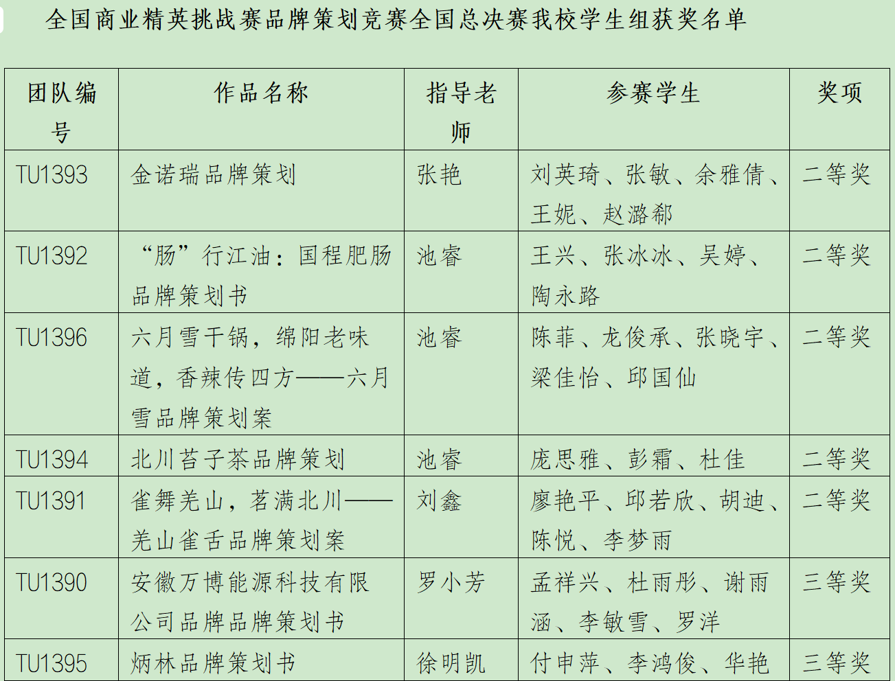 全国高校商业精英挑战赛品牌策划竞赛是《全国普通高校老员工竞赛排行榜》国家级A类赛。目前,该竞赛已成为我国高等商科教育领域中专业全覆盖、赛项最齐全、校企合作最深入、国际交流最广泛的赛事活动,同时也是集学科竞赛、产学合作与国际交流三位一体的创新实践平台,对公司的学科高质量发展、产教融合深化具有重要推动作用。