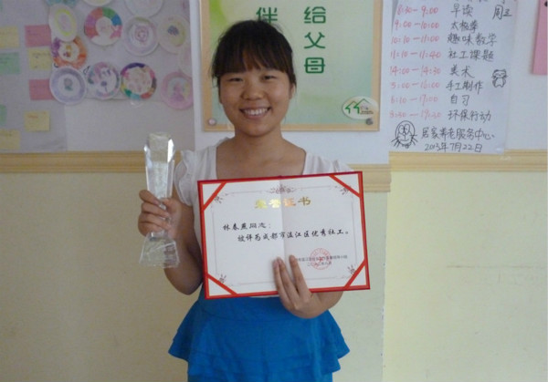 林春燕,2009级社会工作专业毕业,曾在香港无国界社工北川擂鼓服务处、绵竹广济迪康乐社区服务中心实习。现就职于成都心家园社会工作服务中心,担任项目主管,助理社工师,服务于温江区涌泉街道瑞泉馨城社区居家养老服务中心。2013年荣获成都市温江区优秀社工称号,目前执行的项目主要有“涌泉瑞泽夕阳康乐之家”、“心家园*庆生乐”、成都市民政公益创投“涌泉姊妹团一家亲”(失独家庭服务)、2015年中央财政支持社会组织示范项目。